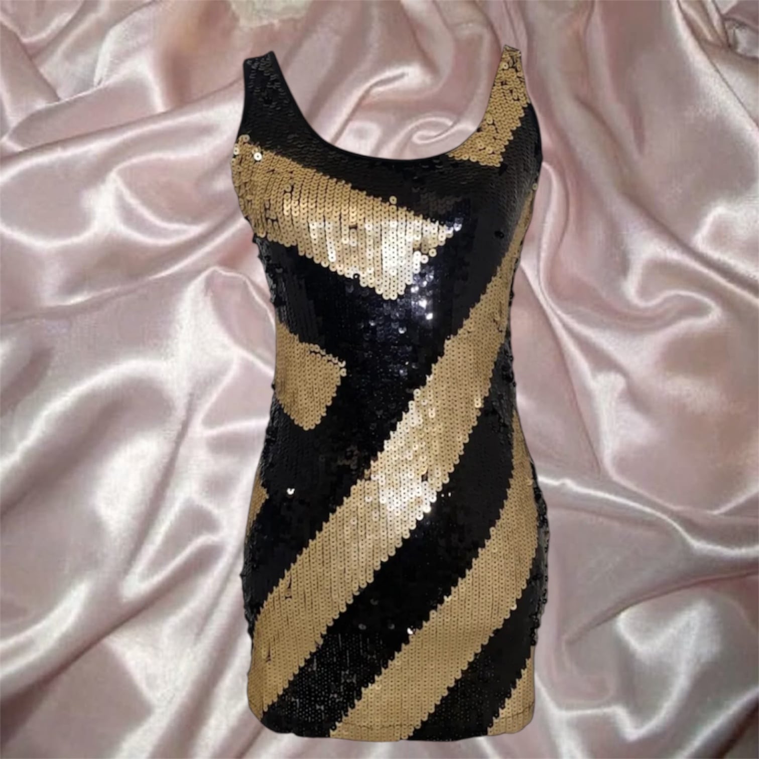 スパンコールが全体に装飾されているタンクトップ